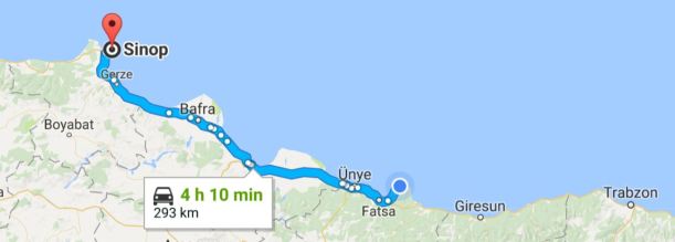 Sinop, petite cité balnéaire très agréable sur un promontoire de la Mer Noire, est une vraie ville, avec ses magasins, son port et le long des quais ses grands cafés ombragés, bondés le soir à la fraîche.