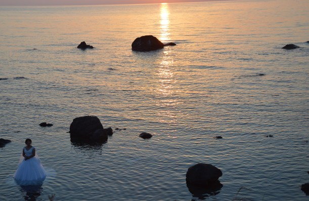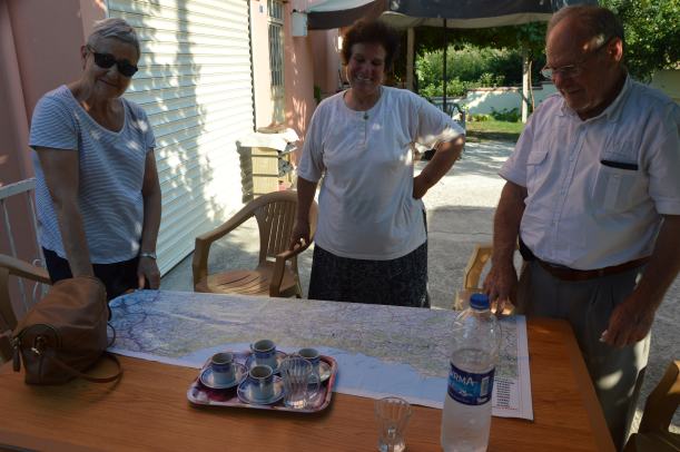 It is a nice place with a harbour, a beach and a few cafes. The restaurant was all decorated with flowers for a marriage. There we got invited again at a retired policeman’s house. We were offered one more tea and prunes from the tree.