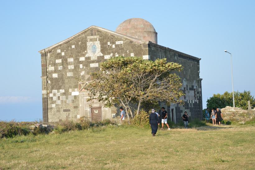 A la recherche d’un coin pour la nuit, nous avons suivi l’indication « Jason’s church » par curiosité. Sur un cap se trouve en effet une église désaffectée (Géorgienne ? Arménienne ?) bizarrement baptisée « Eglise de Jason ».