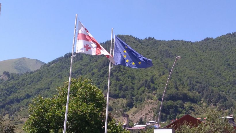 Saakashvili is no longer in power but Georgia continues to declare his love for the European Union: all the official buildings have the flag of the EU next to that of Georgia.