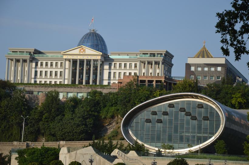 Et puis il y a aussi la Tbilissi High tech, avec quelques bâtiments emblématiques dont la salle de concert et centre de congrès de l’italien Fuksas, qui ressemble à un gros tuyau de métal, dominés par le palais présidentiel.