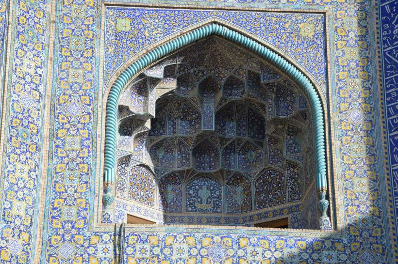 We will only say that these two buildings are grandiose with their domes and walls adorned with blue mosaics. The mosque of the Imam is very large and installed in the center of a large courtyard, while one enters the Lotfollah mosque by a corridor covered from the floor to the ceiling of earthenware tiles. Maybe that’s what Daniel preferred. Here are some details of these two wonders of Islamic art.