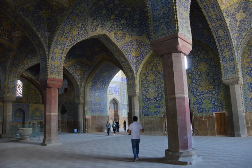 Comme à Bruxelles, Venise, Madrid ou Marrakech, tout tourne autour d’une grande place centrale. La place de l’Imam (ex-place royale) est une splendeur. Elle est immense (500 X 160 m) et bordée sur chacun de ces quatre côtés par des monuments :  deux mosquées,  de l’Imam et Lotfollah, le palais Ali Qapu et l’entrée majestueuse du grand bazar.