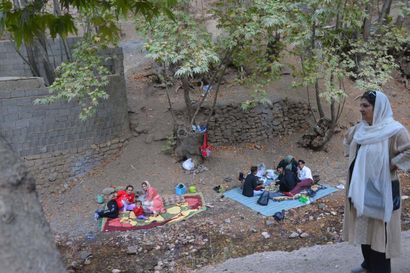 Nous avons aussi passé une journée hors de la ville, dans la montagne, à une vingtaine de kms au nord. Le village de Ghalat a été détruit par un tremblement de terre, mais est devenu une destination de balades et de repos pour les Chirazis. On y vient pour des randonnées dans la montagne, mais aussi pour des pique-niques au bord du torrent ou pour les restaurants. C’est un lieu assez étrange entre éboulements, parkings improvisés, cafés et boutiques.