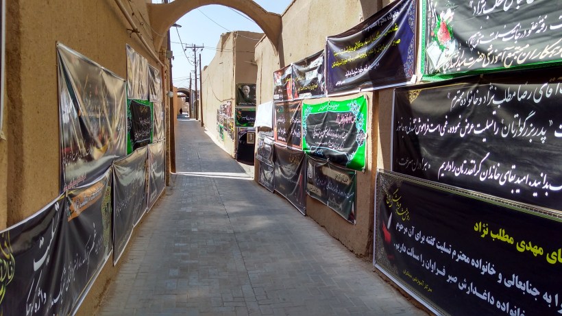 Since our visit to Kashan (the first day of the month of Moharram) we have seen this transformation : more and more black, on people and on the cities. But it was the 9 and 10 Moharram (30 September and 1 October this year) that marked the pinnacle of the commemoration.