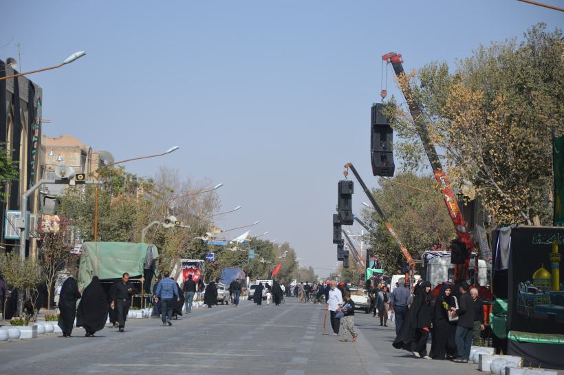 La place principale de Yazd est dominée par un énorme fronton qui autrefois servait d’entrée à un théâtre spécialisé dans les représentations du martyr d’Hussein. Aujourd’hui c’est simplement un décor impressionnant qui fait face à la grande avenue sur laquelle se passaient les défilés. Les colonnes de hauts parleurs étaient encore à fond toute la journée !