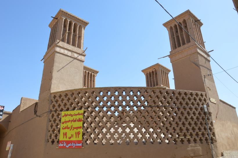 Fortunately the old adobe town is worth a visit, even though most of the shops were closed for « mourning ». And here are some pictures of our random walk along the streets. The stars of the local architecture are of course the Badgirs, the wind towers that serve to refresh the houses.