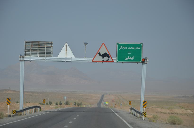 Sur la route de Yazd, on a commencé à prendre la mesure des grands déserts de l’est iranien. Des paysages de caillasses, des lacs asséchés à perte de vue, des montagnes à l’horizon et de très très longues lignes droites.