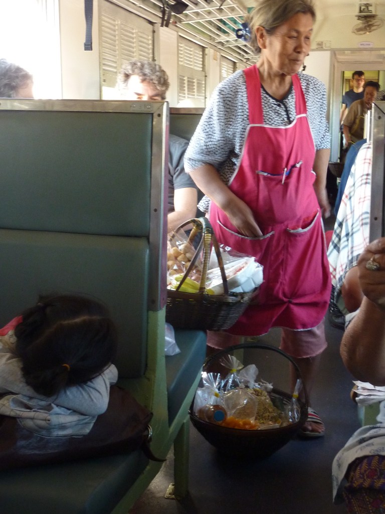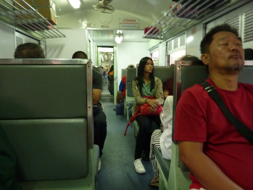 Pourquoi 4h30 ? Parce qu’on devait être à la gare à 5h pour prendre le train pour le Cambodge. Il y a en effet un seul train pour la frontière et il part tôt pour un trajet de 5h. L’économie réalisée en passant par Bangkok quand on veut aller au Cambodge plutôt que d’atterrir à Phnom Penh est évidente. On a trouvé un vol Paris-Bangkok à 420€ et le train coûte 48 baths, soit environ 1,50 €. Ca vaut la peine de se lever tôt !