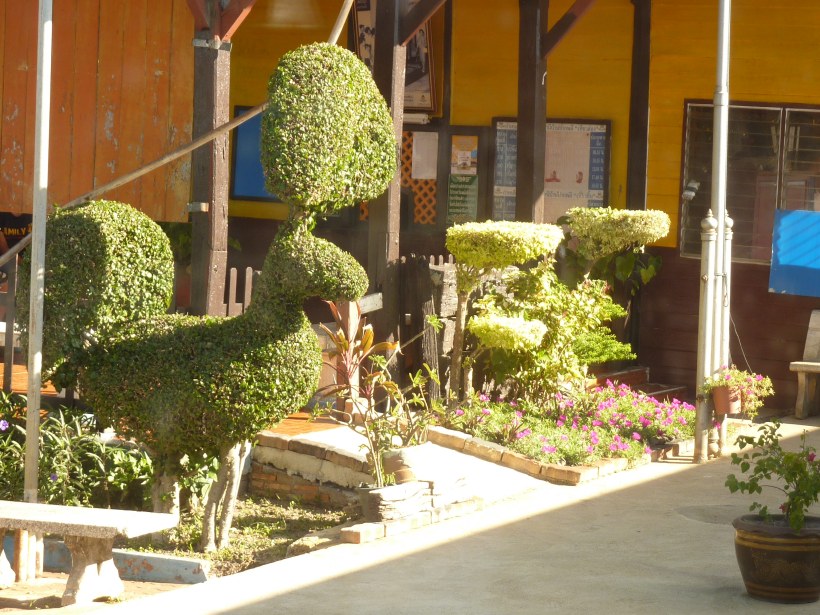 Alors que le train a traversé des kilomètres de bidonvilles tout contre la voie à la sortie de Bangkok, dans la campagne les petites gares sont souvent proprettes.