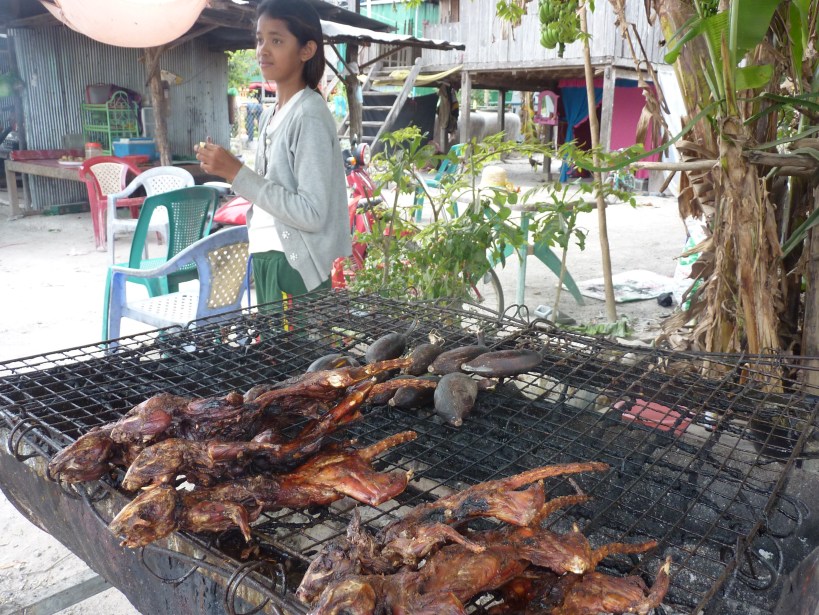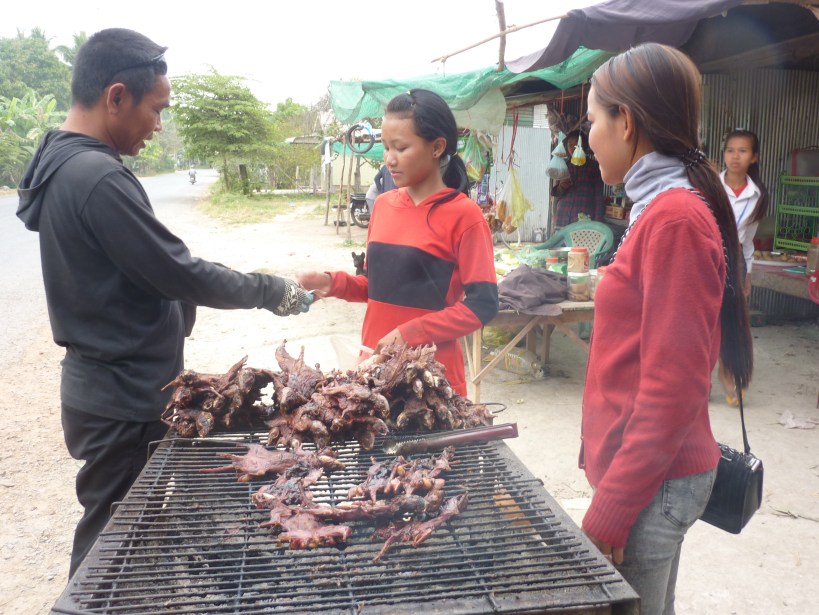 De retour sur notre tuk-tuk, nous avons croisé des petits animaux grillés sur le barbecue au bord de la route.
