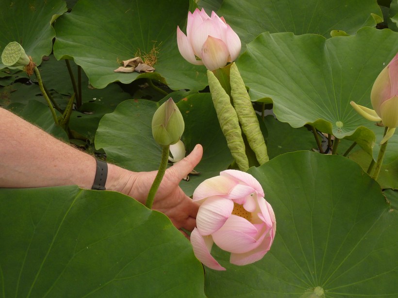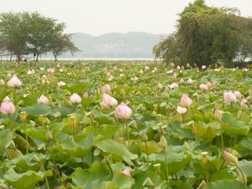 Près d’un lac artificiel, creusé aussi à la même époque par les malheureux cambodgiens (trente mille y sont morts pendant les travaux), on a traversé de magnifiques champs de lotus en fleurs.
