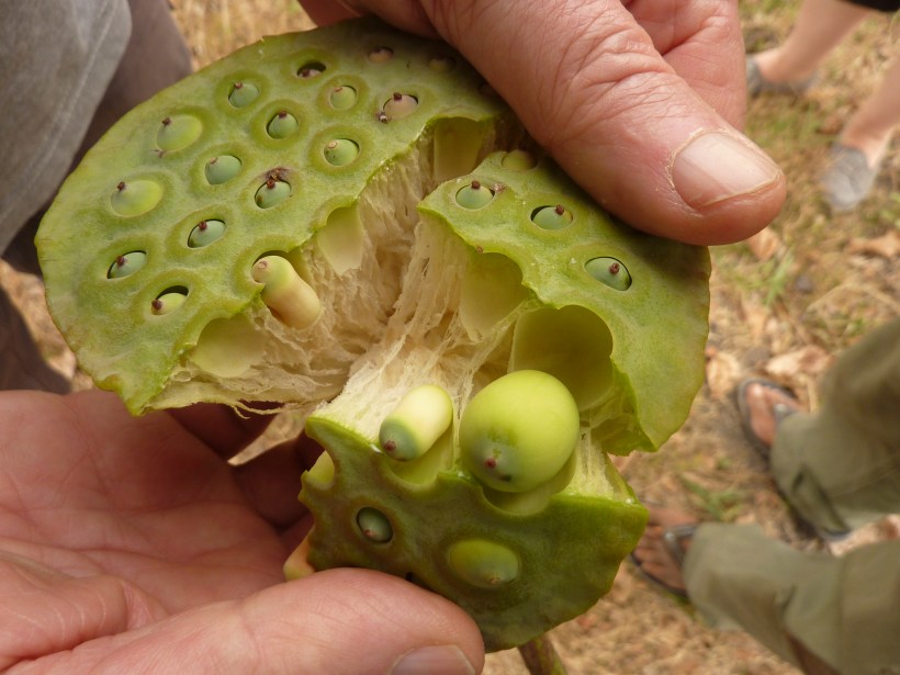Les lotus sont cultivés pour les graines qui se trouvent au coeur de la fleur. Celles-ci servent pour les offrandes aux temples. C’est la fleur sacrée des bouddhistes et on la retrouve sculptée sur tous les édifices religieux.