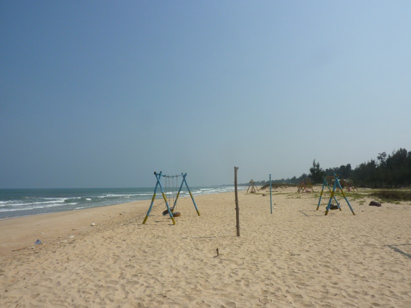 D’après ce qu’on a lu, la seule chose vraiment intéressante, c’est la visite des tunnels de Vinh Moc. En route donc pour ce site, et en scooter cette fois-ci. La petite route côtière est magnifique sous le soleil et les plages, superbes et désertes, invitent à la baignade.