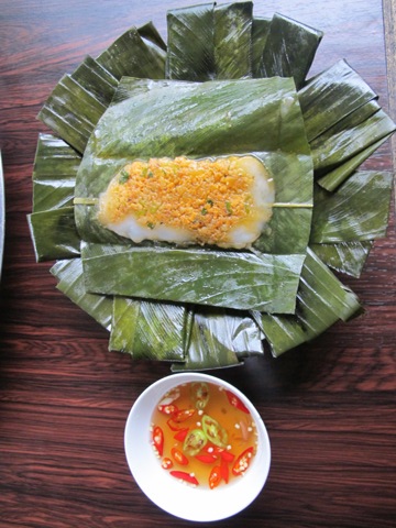 Les Banh nam sont cuites à la vapeur et servis dans des feuilles de banane. Un vrai délice !