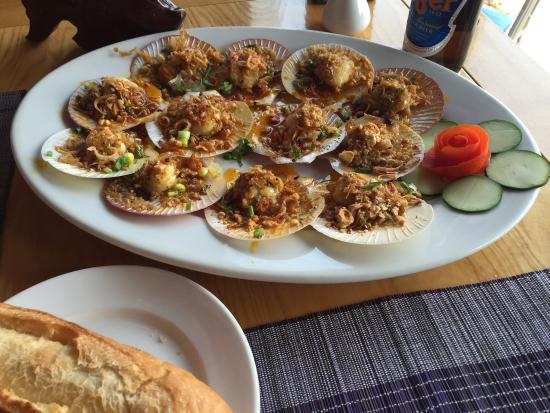 Et ne pas oublier les fruits de mer, dont on ne mentionnera qu’une recette à tomber par terre, les pétoncles farcies. Un pur moment de grâce.
