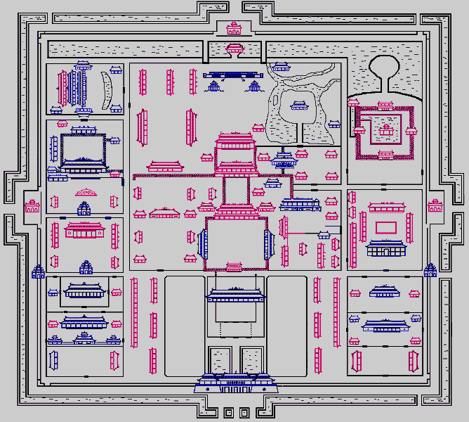 La citadelle forme un grand carré de dix kms de périmètre, entouré de douves. A l’intérieur deux enceintes successives protégeaient la résidence de l’empereur.