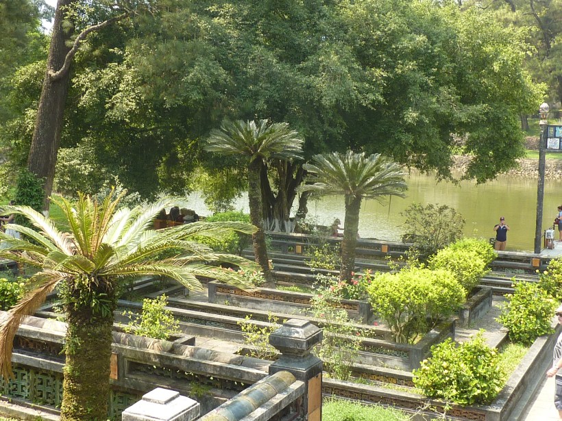 Plus loin de Hué, une « vallée des tombeaux » regroupe les tombes de plusieurs empereurs Nguyen (la dernière dynastie vietnamienne). Nous avons choisi de visiter celle de Ming Mang. Bien nous en a pris, car le lieu est superbe.
