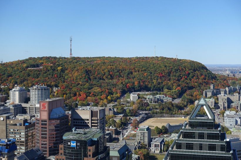 Montréal est dominée en son centre par le Mont Royal. Cette grande colline boisée est le paradis des promeneurs et des touristes. Les belvédères permettent d’appréhender la cité dans toutes les directions. En regardant vers le sud et le fleuve depuis le sommet, sur un immeuble, un magnifique portrait de Léonard Cohen. Saurez-vous le retrouver ?