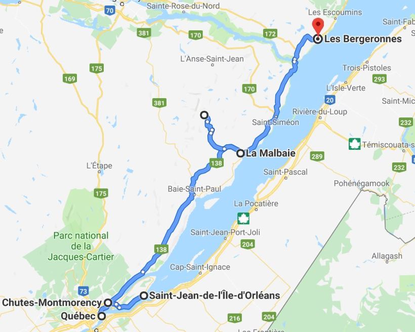 Après Québec, direction la côte nord, le long de la rive gauche du Saint-Laurent.