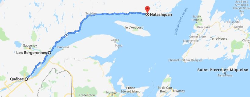Question orientation, ce n’est pas compliqué. Si vous sortez de Quebec par l’est, vous prenez la 138 et c’est tout droit sur 1080 kms ! De toutes façons, il n’y a pas d’autres routes !