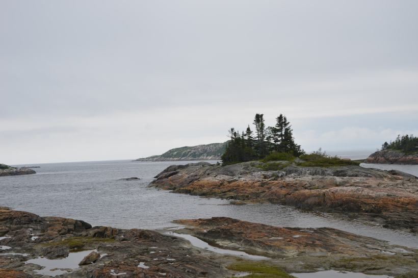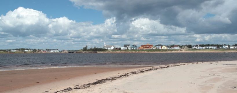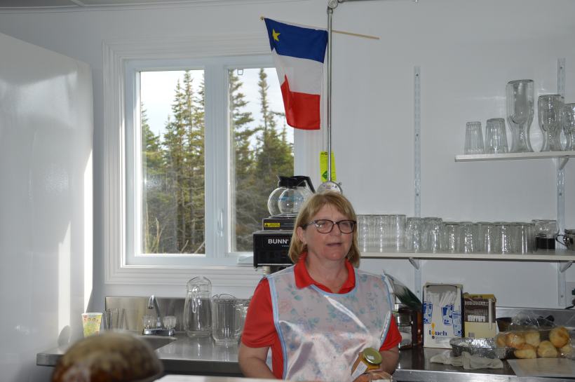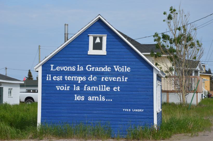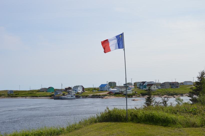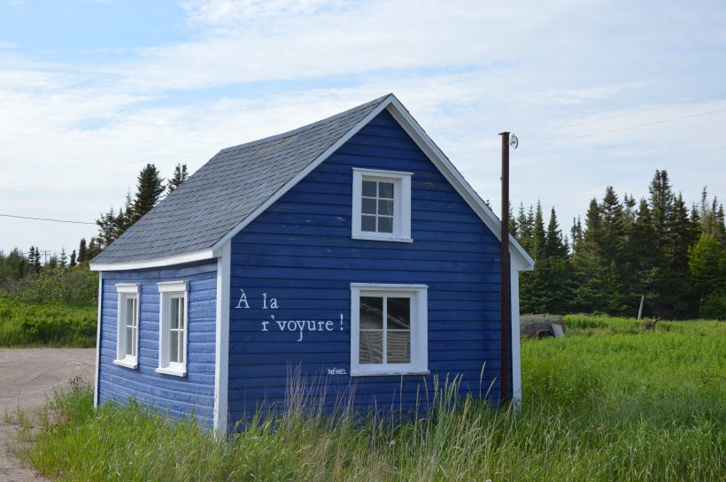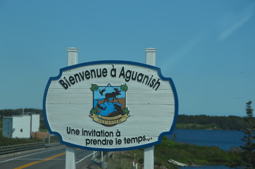 En entrant dans la boutique du fumoir de saumon local, on découvre un drapeau un peu particulier : celui de l’Acadie, tricolore, avec une étoile jaune. La petite communauté d’Aguanish est en fait formée des descendants de réfugiés acadiens, qui ont quitté les îles de la Madeleine – au centre du golfe du Saint-Laurent- lorsque le gouverneur anglais des îles leur a rendus la vie impossible. L’histoire tragique de l’Acadie.