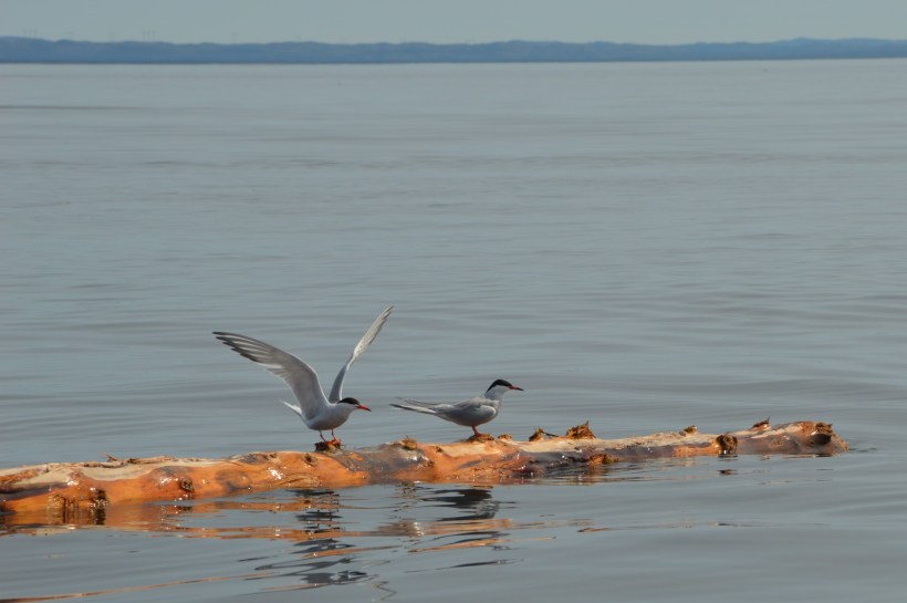 sous le regard blasé de deux sternes sur leur tronc d’arbre.