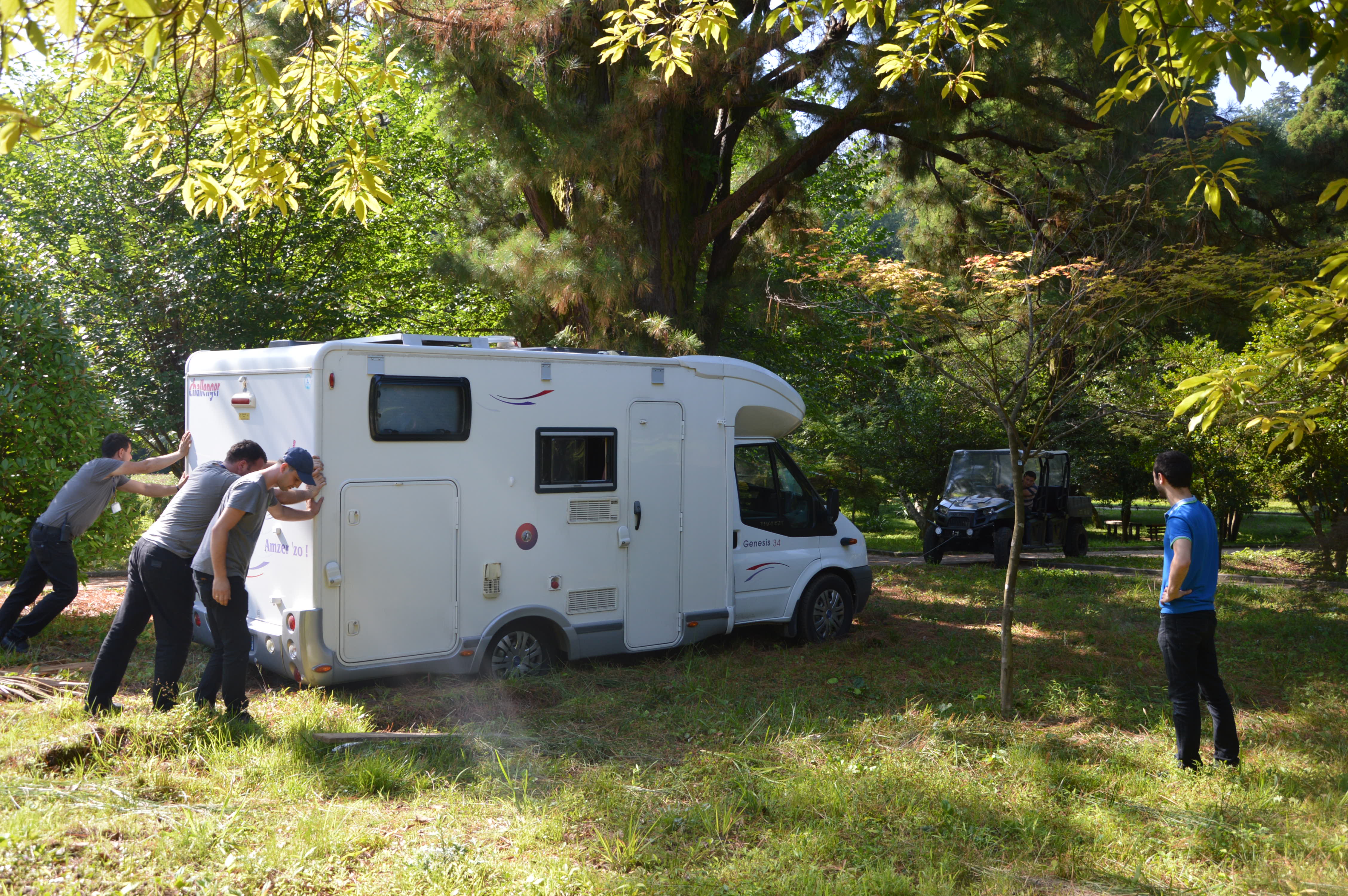 By cons when climbing the dirt road to get there we rubbed the back of the camper. Electric wires were ripped off and no more tail lights. Two hours of work by an electrician (20 €) the next day fixed it up, but we got a bit of stress.