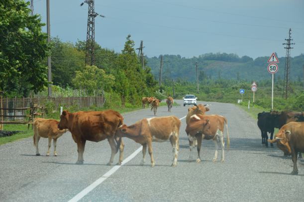 After several cool days in the mountains near Sno, we took the road towards Armenia. The herds of immobile cows were still in the middle of the road.