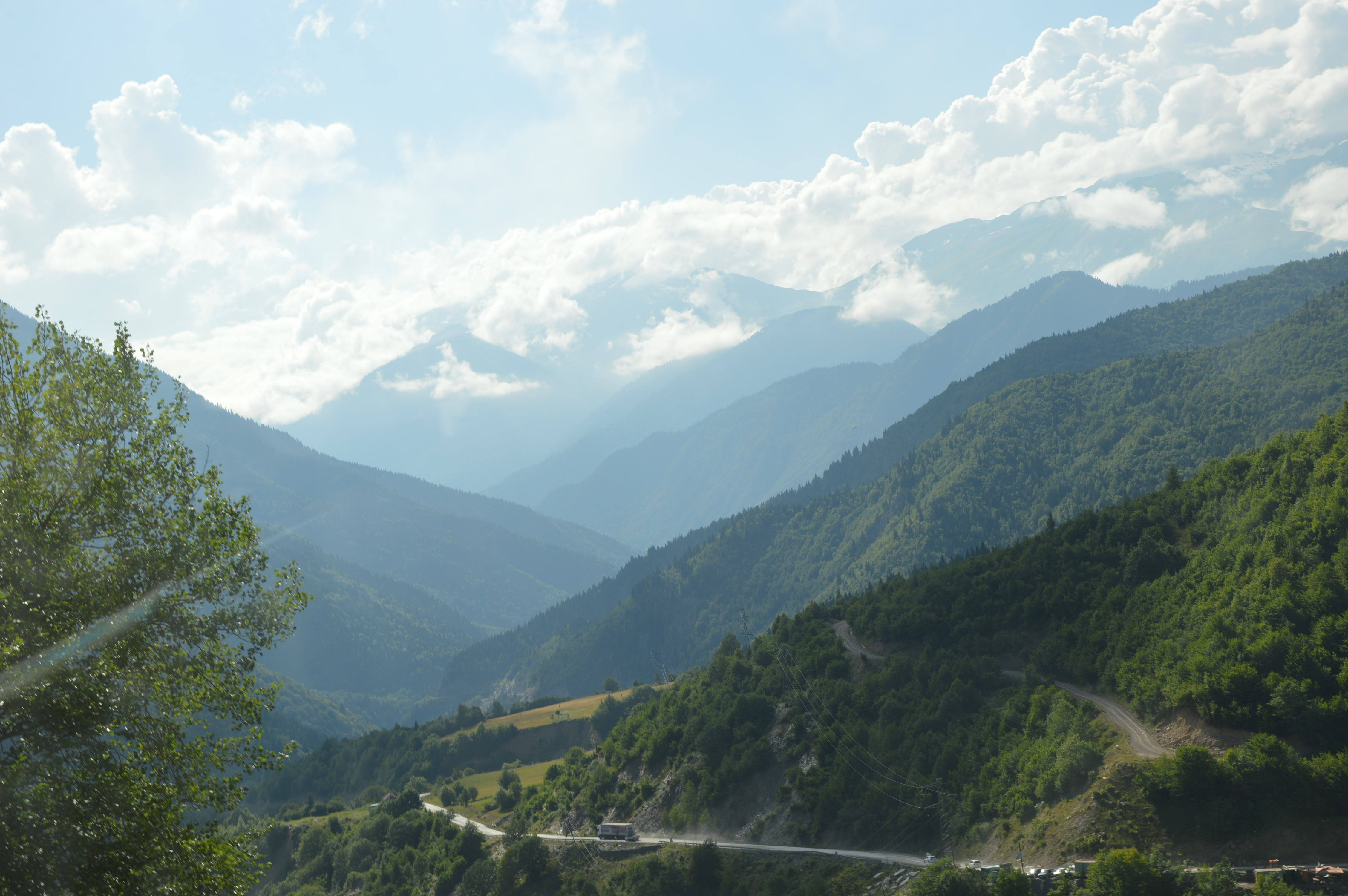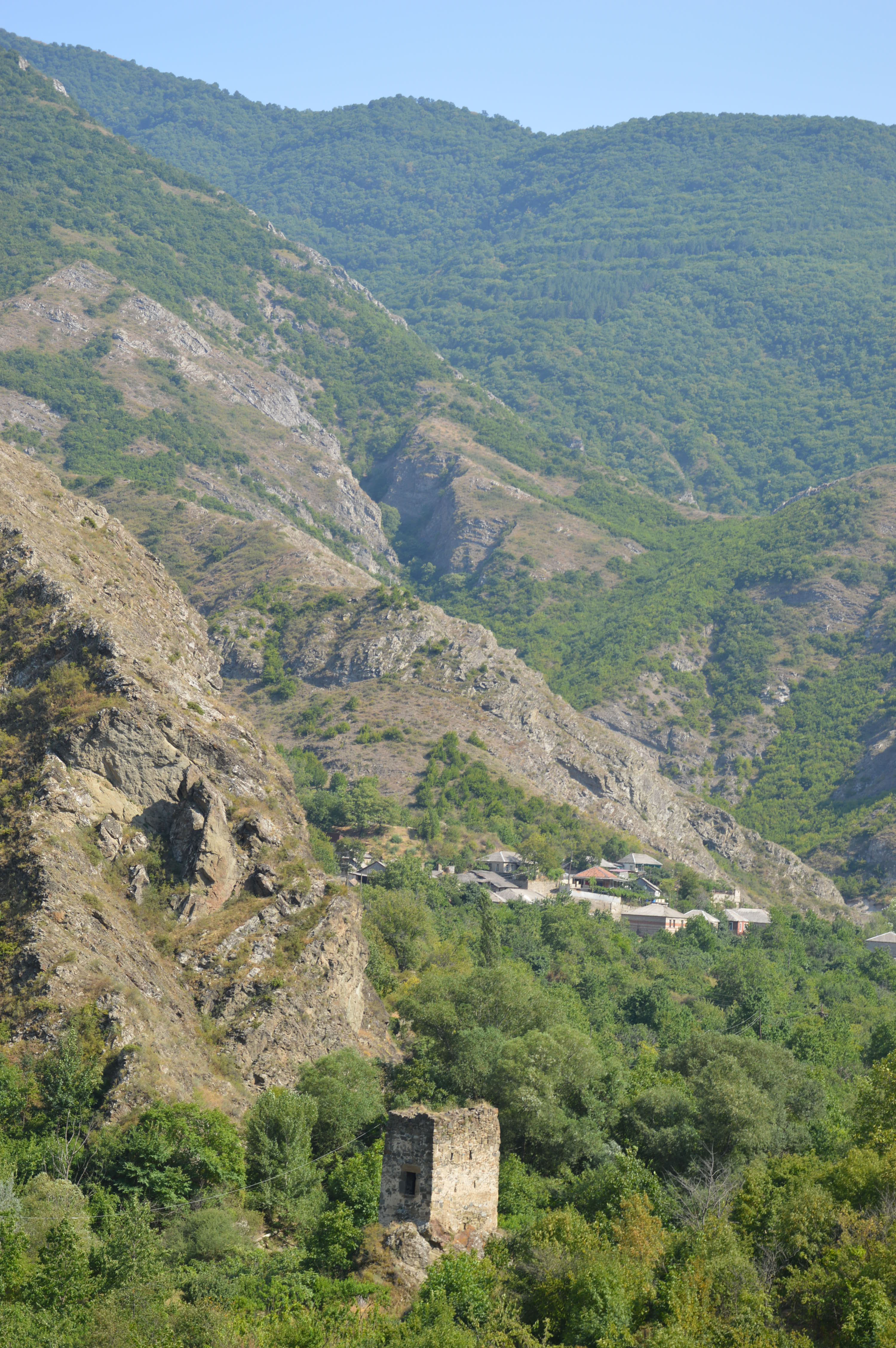The road winds up at he bottom of Debed valley and turns into a spectacular gorge. It is very beautiful, once you forget the mines and their skeletons of rusty steel.