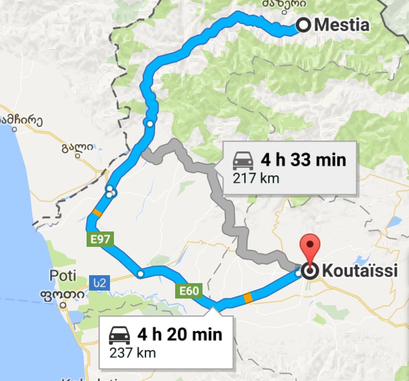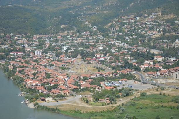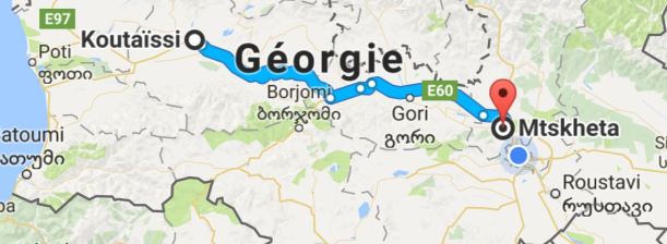 Une première étape à Mskheta, à 25 kms de Tbilissi, près de l’autoroute. On y avait déjà passé une journée mais cette fois-ci c’était seulement pour dormir. On a choisi de s’éloigner du parking officiel, avec ses chiens errants qui avaient aboyé toute la nuit, pour un coin près de la rivière (41.840451, 44.723754).