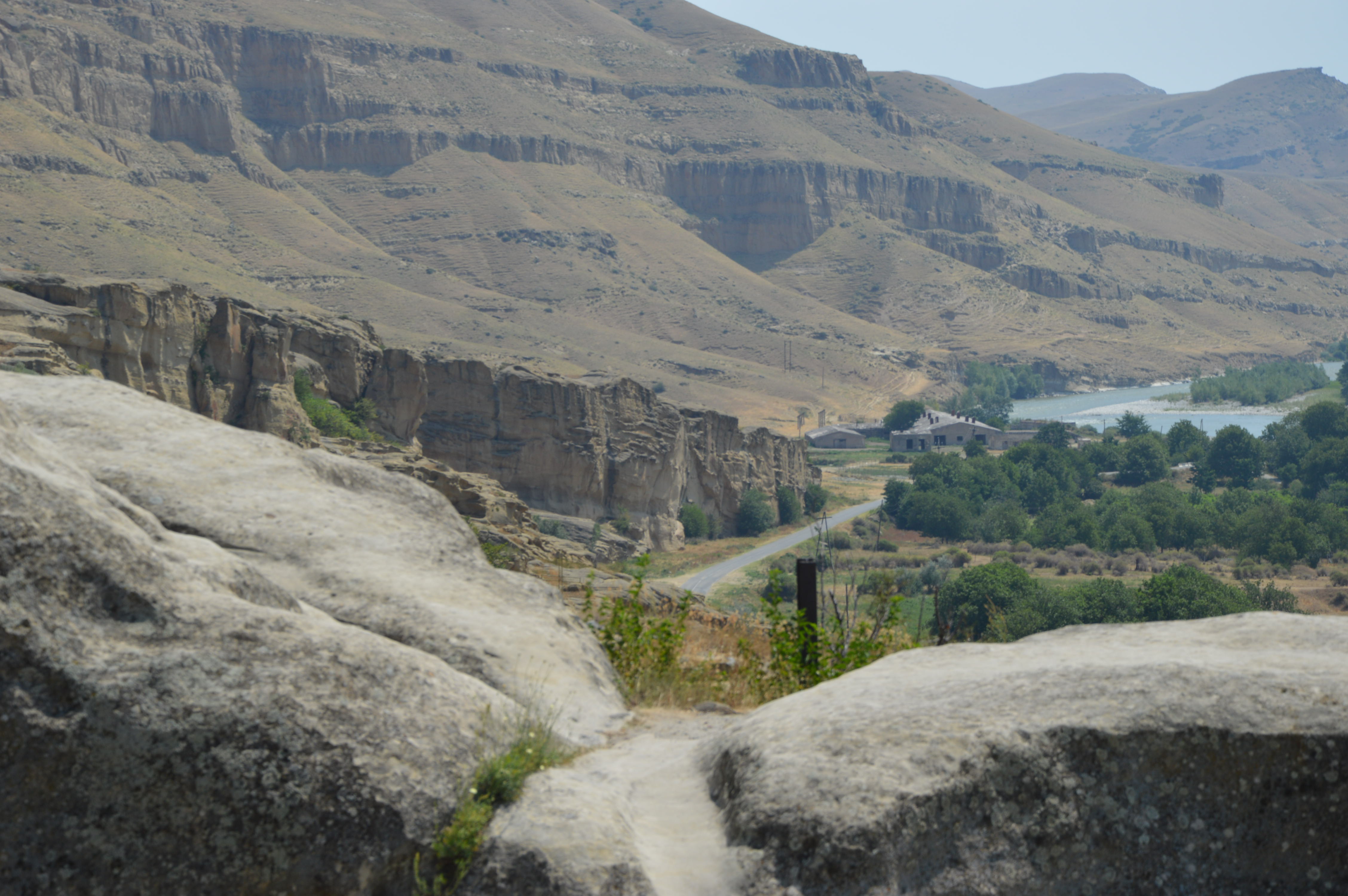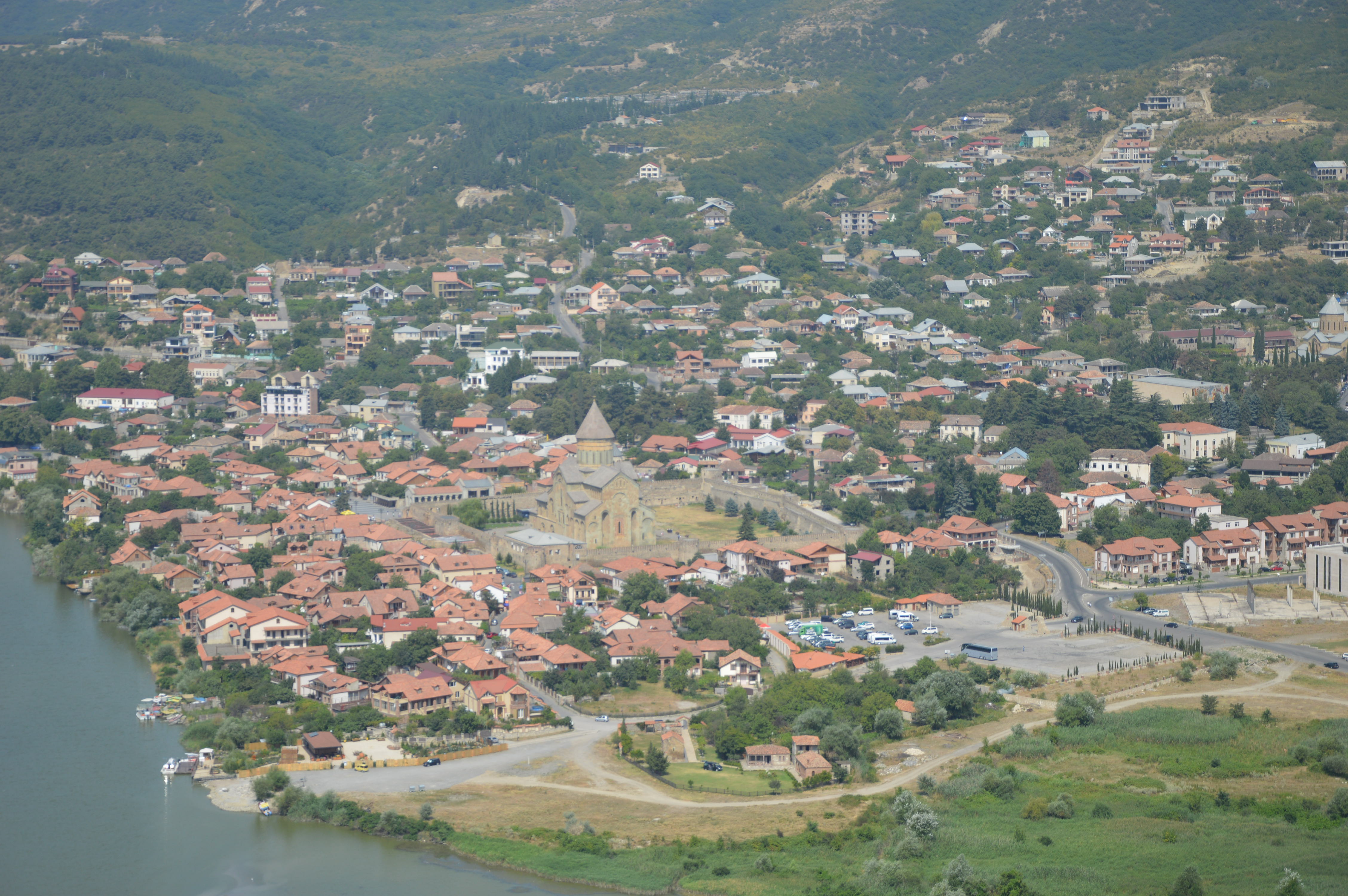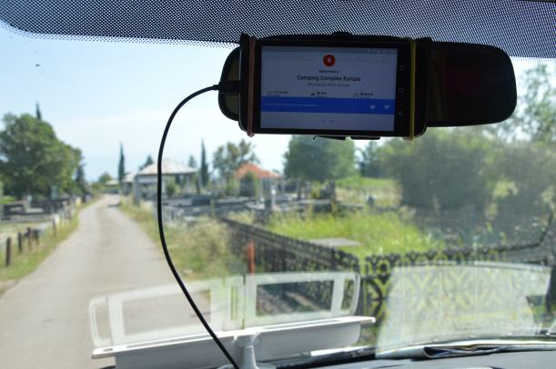 A first stop in Mskheta, 25 kms from Tbilisi, near the highway. We had already spent a day there but this time it was only to sleep. We chose to walk away from the official car park, with stray dogs that had barked all night, for a spot near the river (41.840451, 44.723754).
