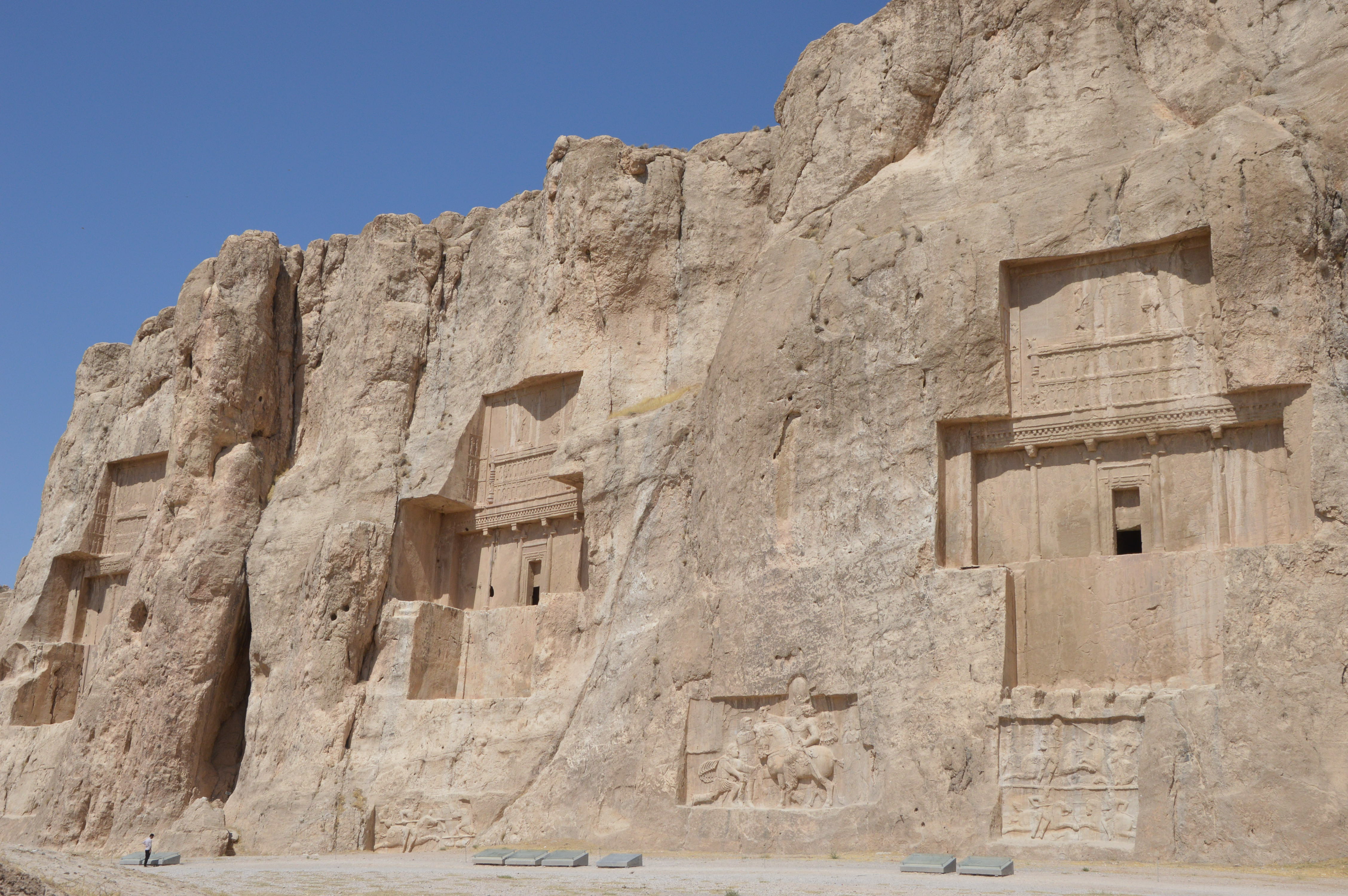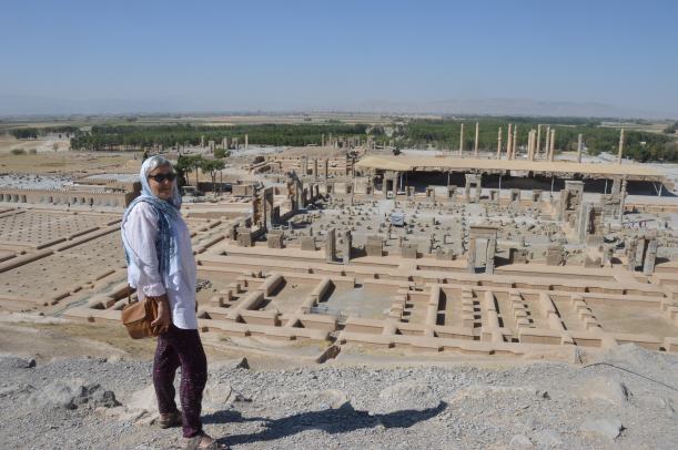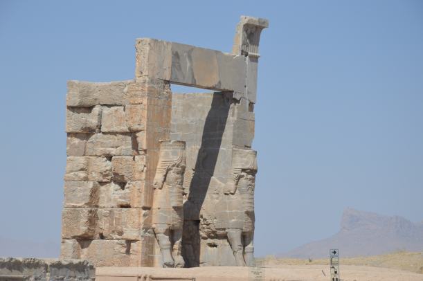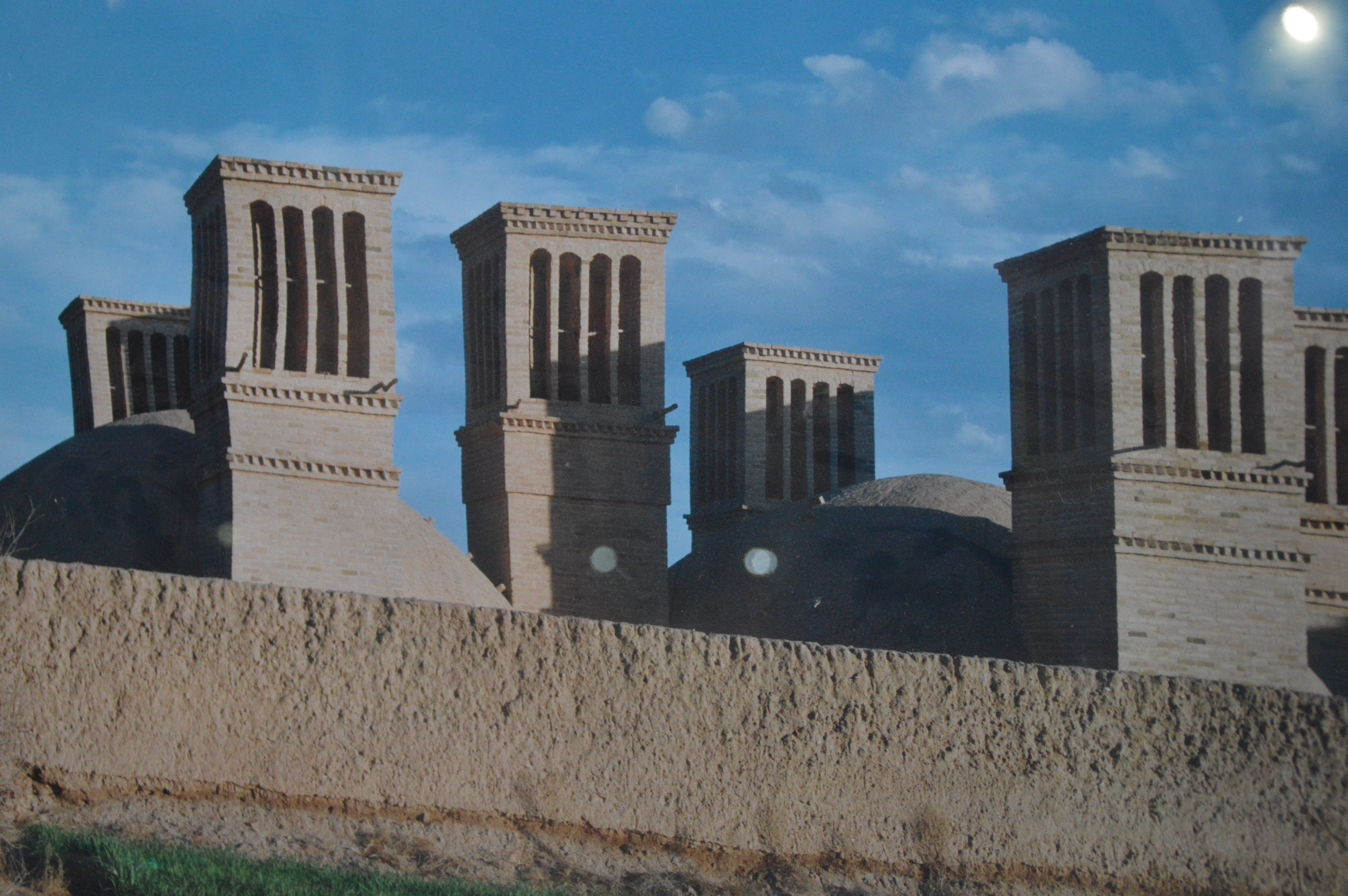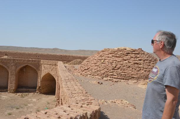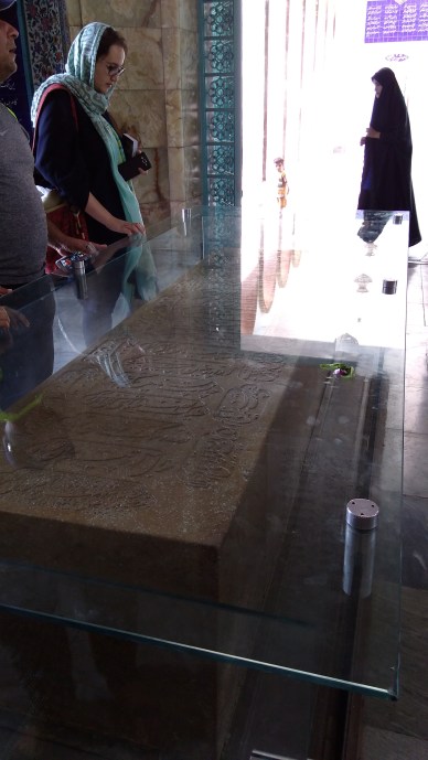 Le premier jour, nous nous sommes arrêtés à Nishapour pour saluer la tombe de Omar Khayyam, dans un parc où il cohabite avec un saint chiite et son mausolée. Le parc est séparé en deux : à droite le mausolée et un grand nombre d’iraniens, et à gauche derrière des grilles, la moité du jardin qui abrite le monument à Khayyam. Gratuité à droite, et ticket à gauche côté Khayyam. On n’est pas radins mais quand même ! Quand en plus on découvre que le monument est en réfection et couvert d’échafaudages, on comprend qu’il n’y ait personne et on a l’impression d’avoir été arnaqués !