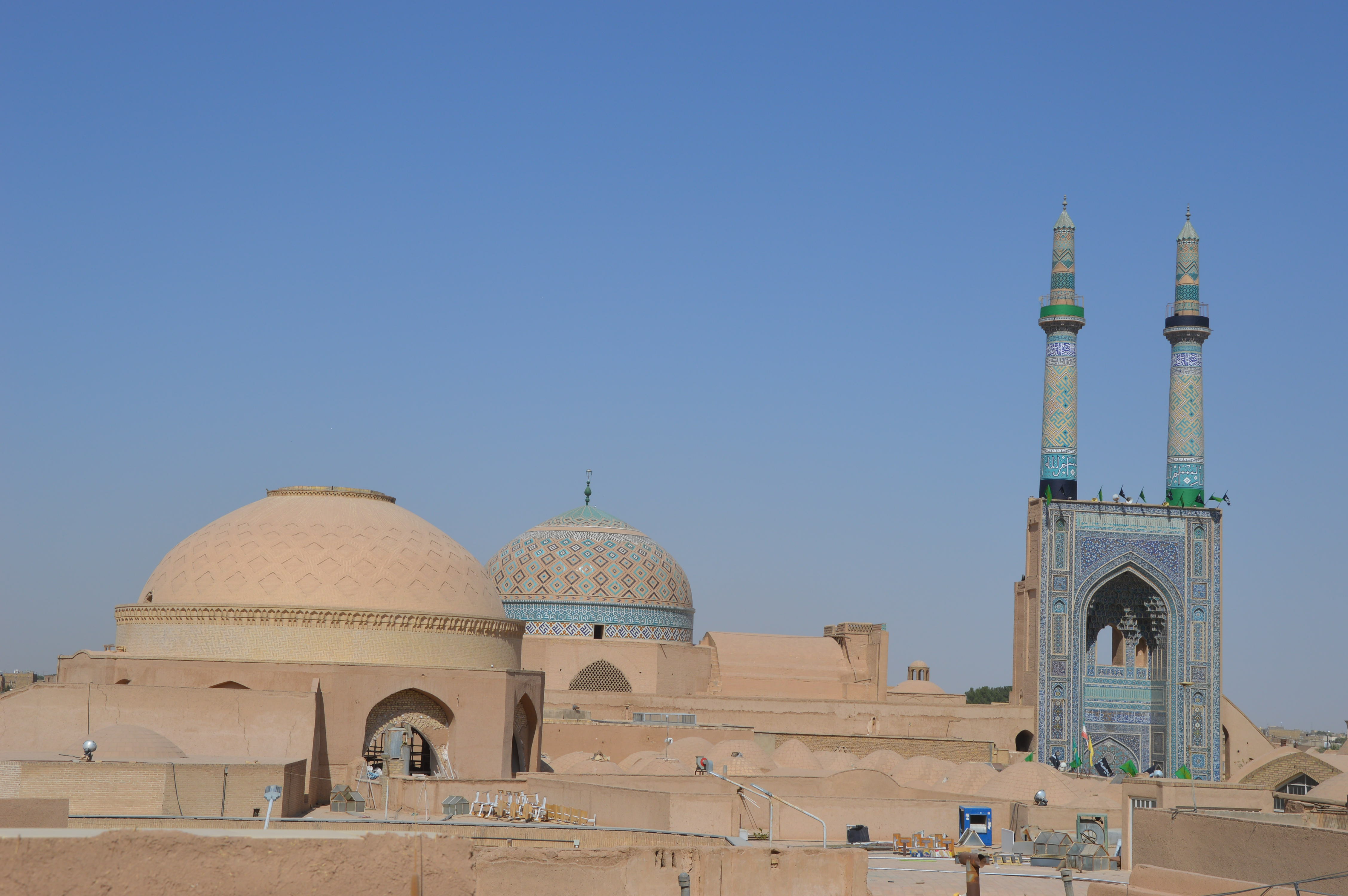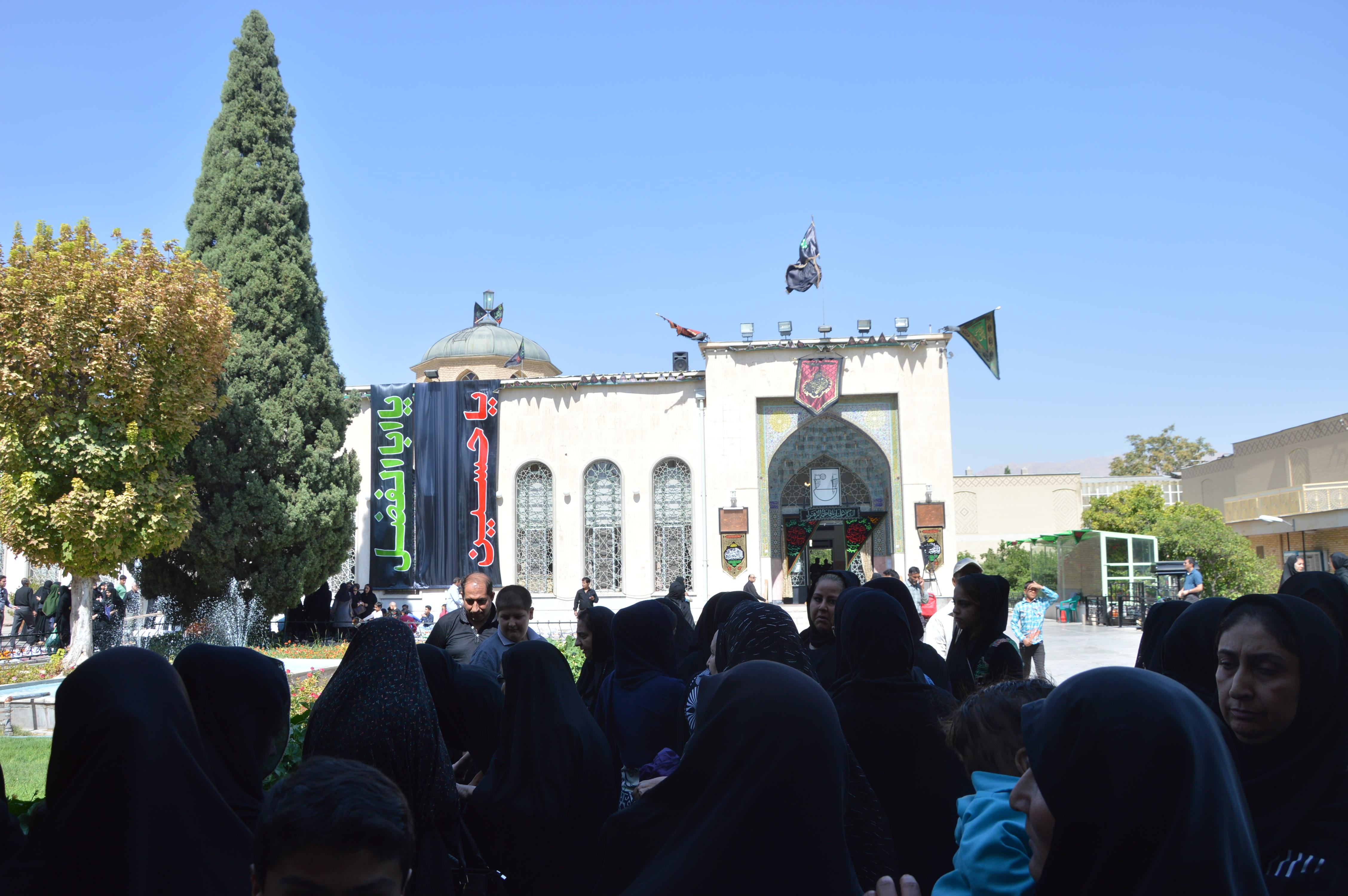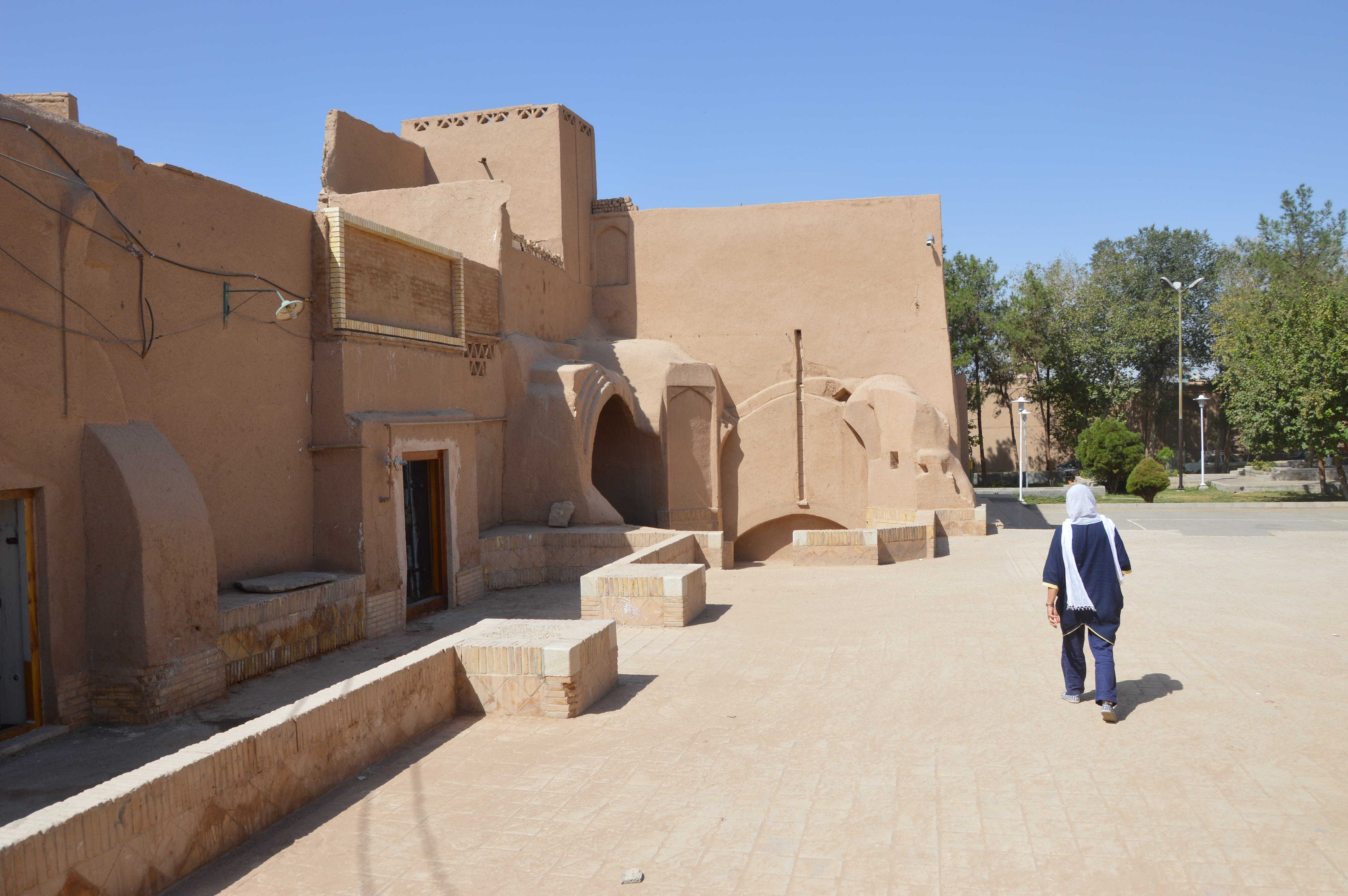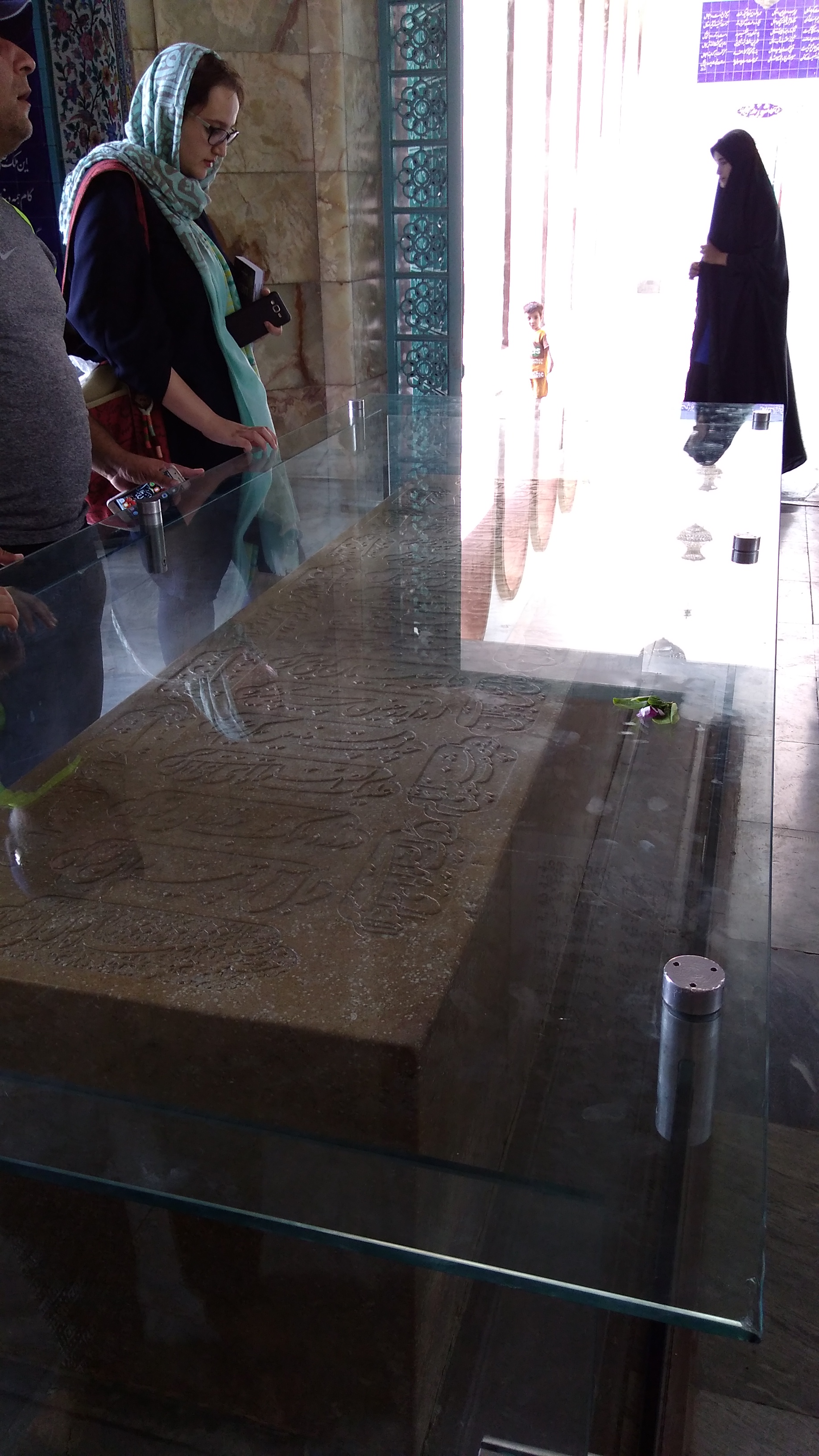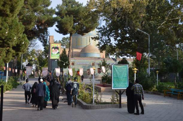 The first day we stopped in Nishapur to greet Omar Khayyam’s grave in a park where he sleeps for ever near some Shiite holy man and his mausoleum. The park is separated in two: on the right the mausoleum and a large number of Iranians, and on the left, behind fences, the other half of the garden which houses the monument to Khayyam. Free entrance on the right, and ticket for the left side. When we discovered that the monument is being repaired and covered with scaffolding, we understood why there was nobody on that side and we felt a bit scammed!