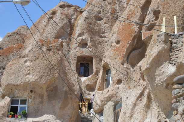 Vers 13h, tout d’un coup, on entend appeler « Daniel, c’est Mitra ! » par dessus le mur du parking et on voit apparaître une femme toute en noir (on est en Moharram), en haut d’une échelle branlante en bois : c’était effectivement Mitra, qui s’inquiétait pour notre téléphone !