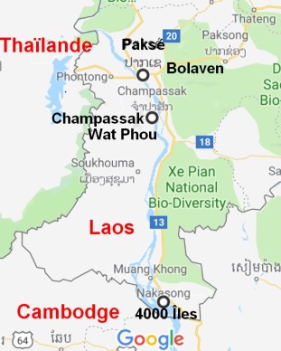 De Vientiane à Paksong, les routes sont souvent défoncées, avec des nids de poules, d’autruche, voire d’éléphants. Le goudron alterne avec des passages de pistes empierrées. Ce nord Laos est vraiment isolé du monde.