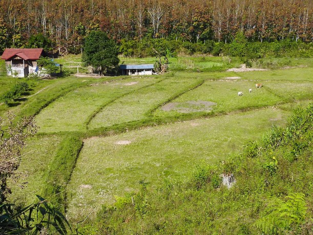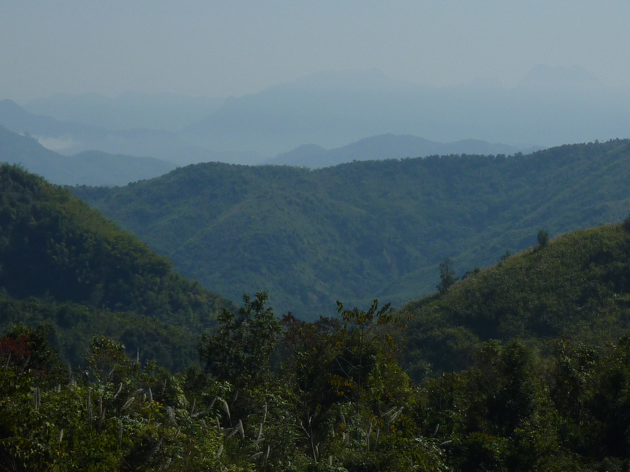 En montant vers le nord, on rencontre très vite les reliefs. Autant le sud, le long du Mékong, est sec, plat et poussiéreux, autant le nord est verdoyant et montagneux.