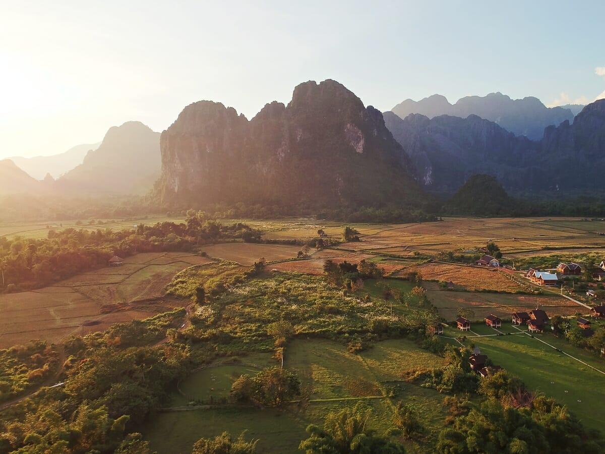 Autour de Vang Vieng, les montagnes prennent la forme de pains de sucre, comme on en verra du côté de la baie d’Halong au Vietnam.