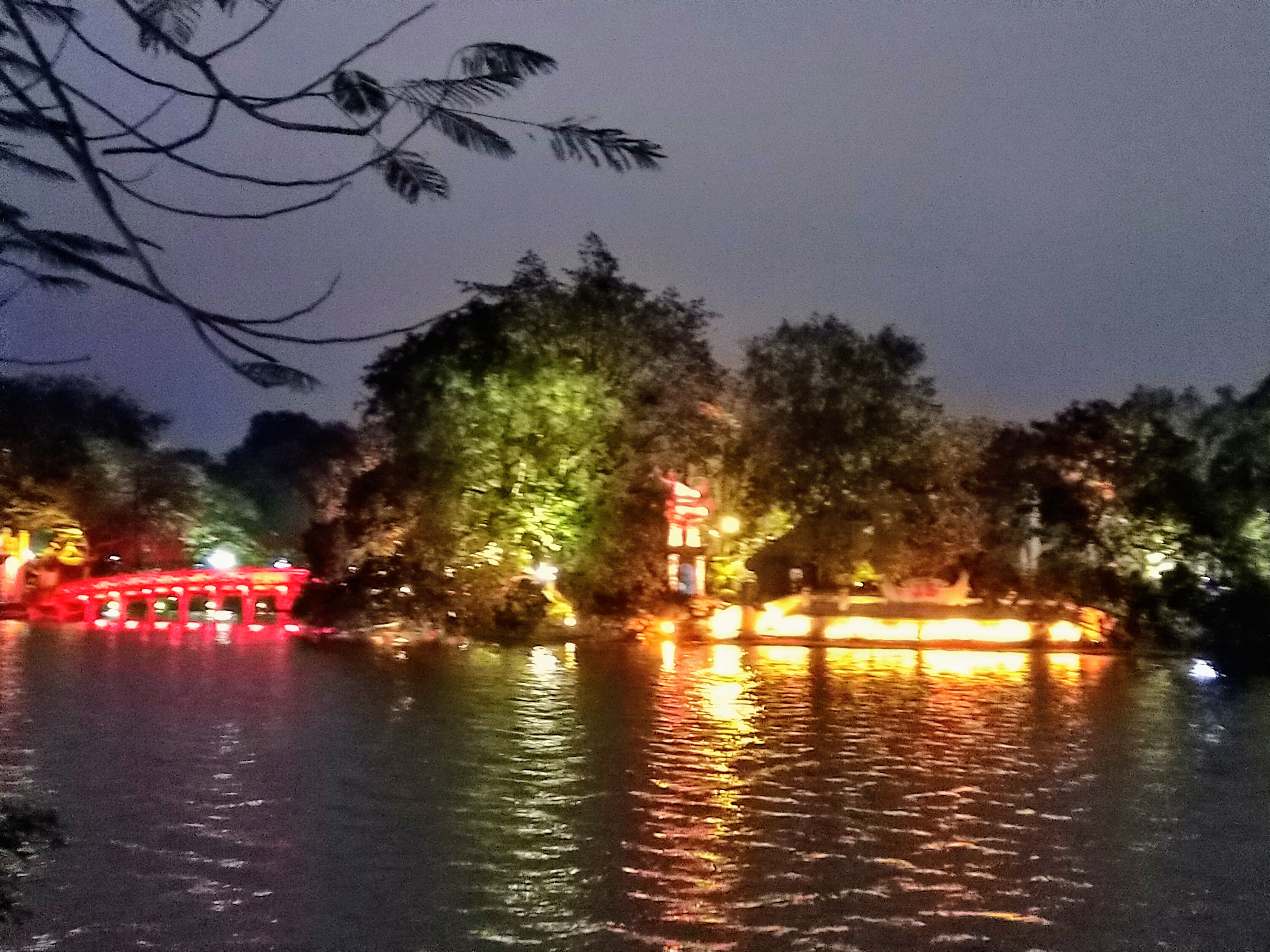 Faire le tour du lac Hoan Kiem, qui borde le quartier au sud, est un des plaisirs du soir. La pagode blottie sur un ilot boisé du lac est illuminée comme en plein jour.