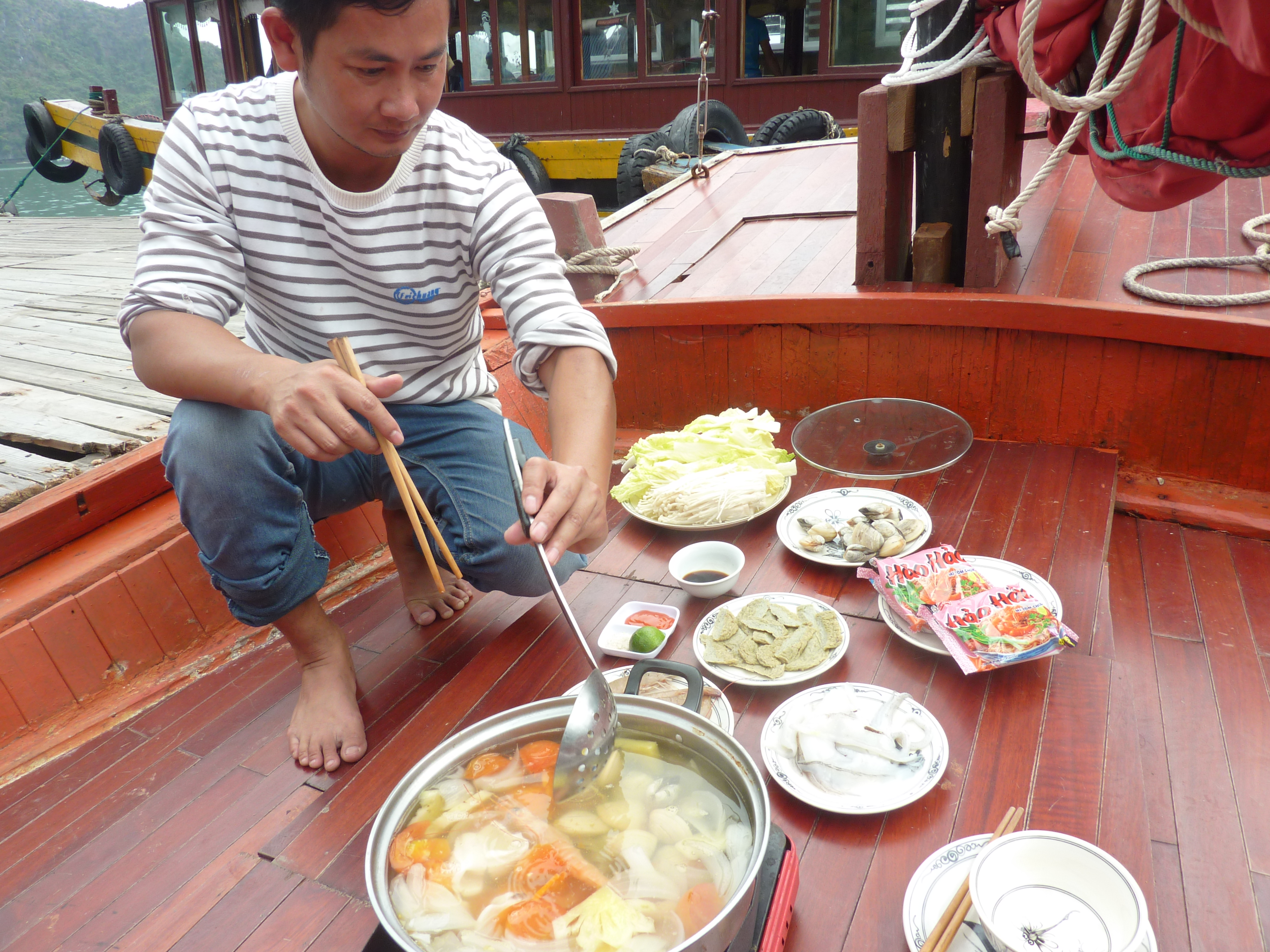 On a l’impression qu’il y a plus de motos que d’habitants. Paradoxalement, ce n’est pas difficile de traverser à pied, et sans doute moins dangereux qu’en Europe. Les motos et scooters ne vont pas très vite et louvoient à droite ou à gauche quand ils vous aperçoivent. Chon, qui déteste les passages cloutés, était à son affaire !