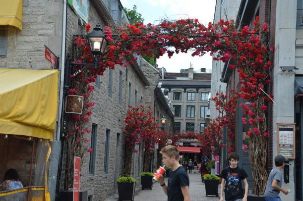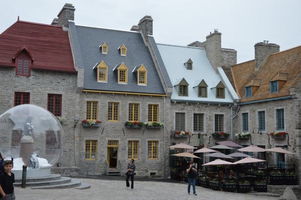 La vieille ville de Québec est la seule ville d’Amérique du Nord encore ceinte de remparts. On s’y promène comme dans une page d’histoire. Les maisons de pierre grise racontent encore et toujours l’épopée des Cartier, Champlain, MaisonNeuve et la création de la Nouvelle-France. Les drapeaux québécois étaient partout en cette Saint-Jean-Baptiste mais pas beaucoup de drapeaux canadiens !