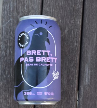 Quant à la bière du jour, on vous propose la Brett pasBrett, bière de cachette, brassée en Abitibi, en haut, là-bas, au pays des… maringouins..