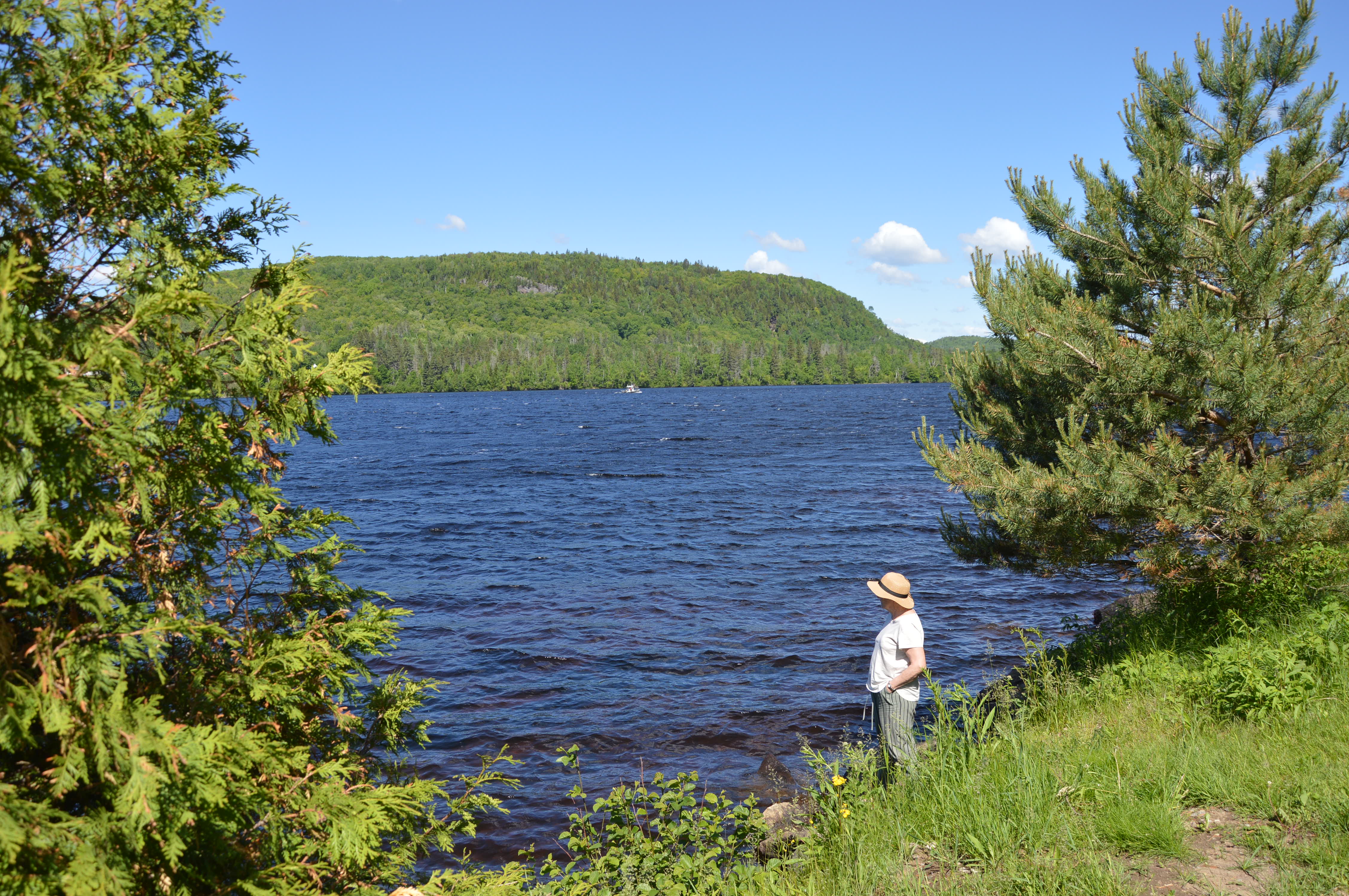 A main droite, vous apercevez le Saint-Laurent de temps en temps entre les sapins, et à main gauche, c’est la forêt. C’est simple.