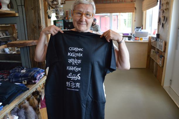 Au musée du bûcheron, il y avait des chemises à carreaux (comme de bien entendu) à vendre, mais c’est plutôt un T shirt « vive le Québec libre » qui a attiré notre attention :
