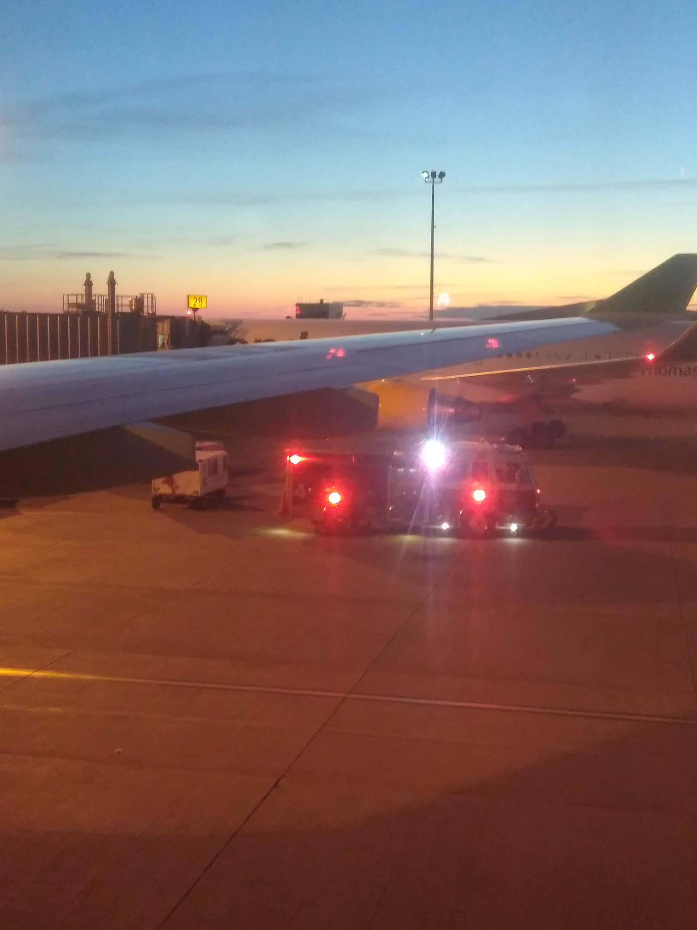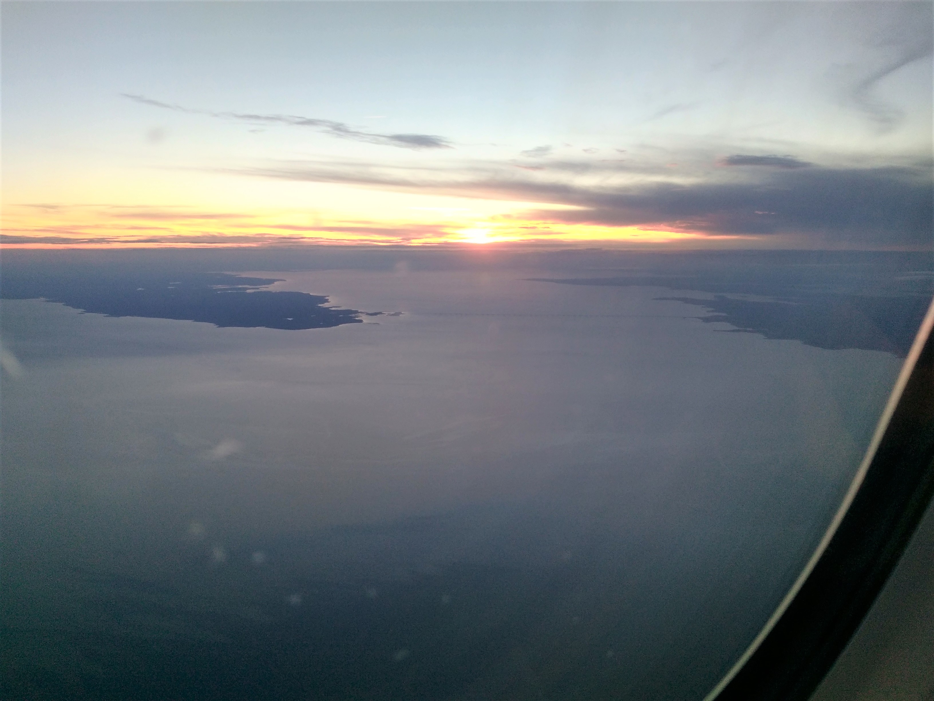 S’en suit un beau coucher de soleil sur les côtes de Nouvelle-Ecosse et deux heures d’attente sur le tarmac de Halifax.